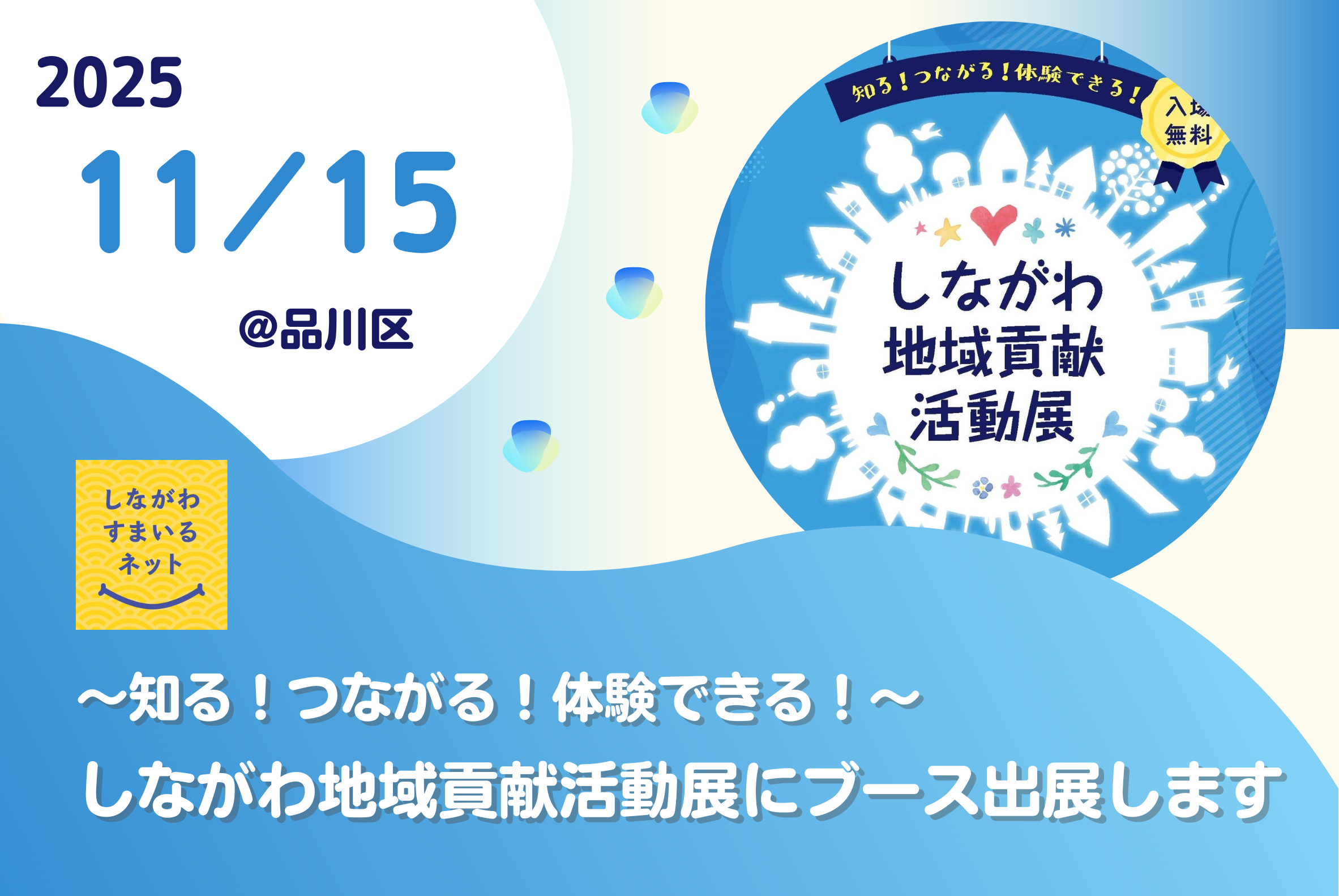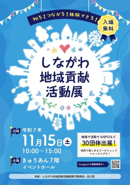 2025年11月15日(土)、東京都品川区にて開催される「しながわ地域貢献活動展」にて、品川区民活動情報サイト「しながわすまいるネット」の操作説明ブースを出展します。