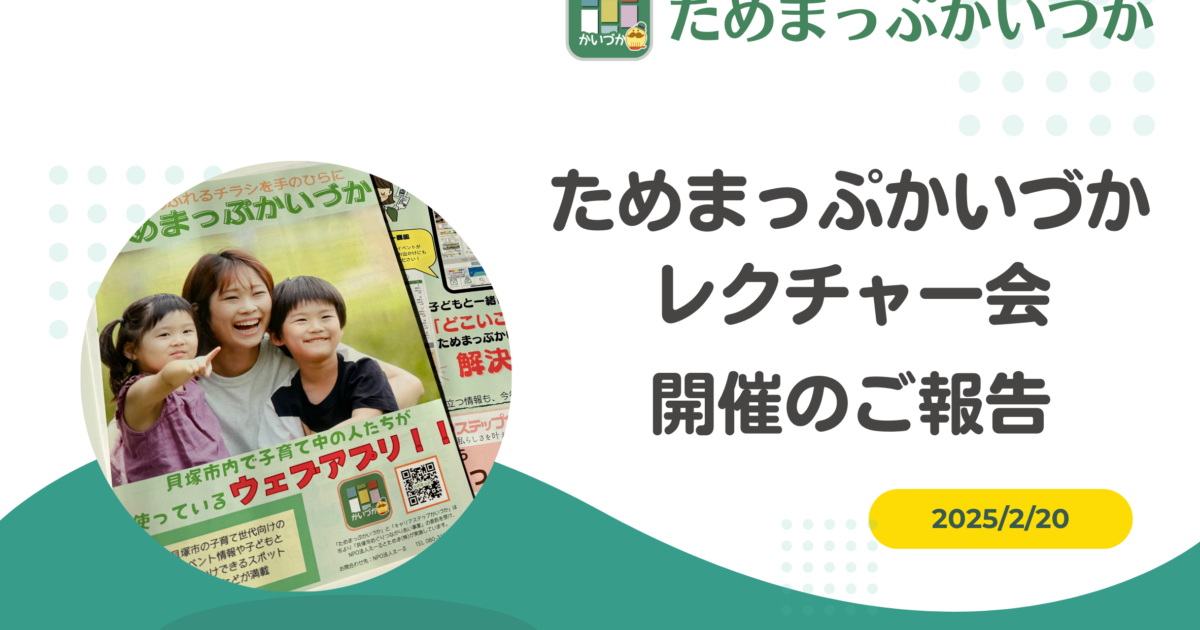 2025年2月20日(木)、貝塚市のNPO法人えーる様が開催する、貝塚市職員様向け「子育て世代向けアプリ『ためまっぷかいづか』研修会」にてためまっぷレクチャーを行いました。 『「ためまっぷ」の … 続きを読む ためまっぷかいづかの職員向け研修会を開催しました